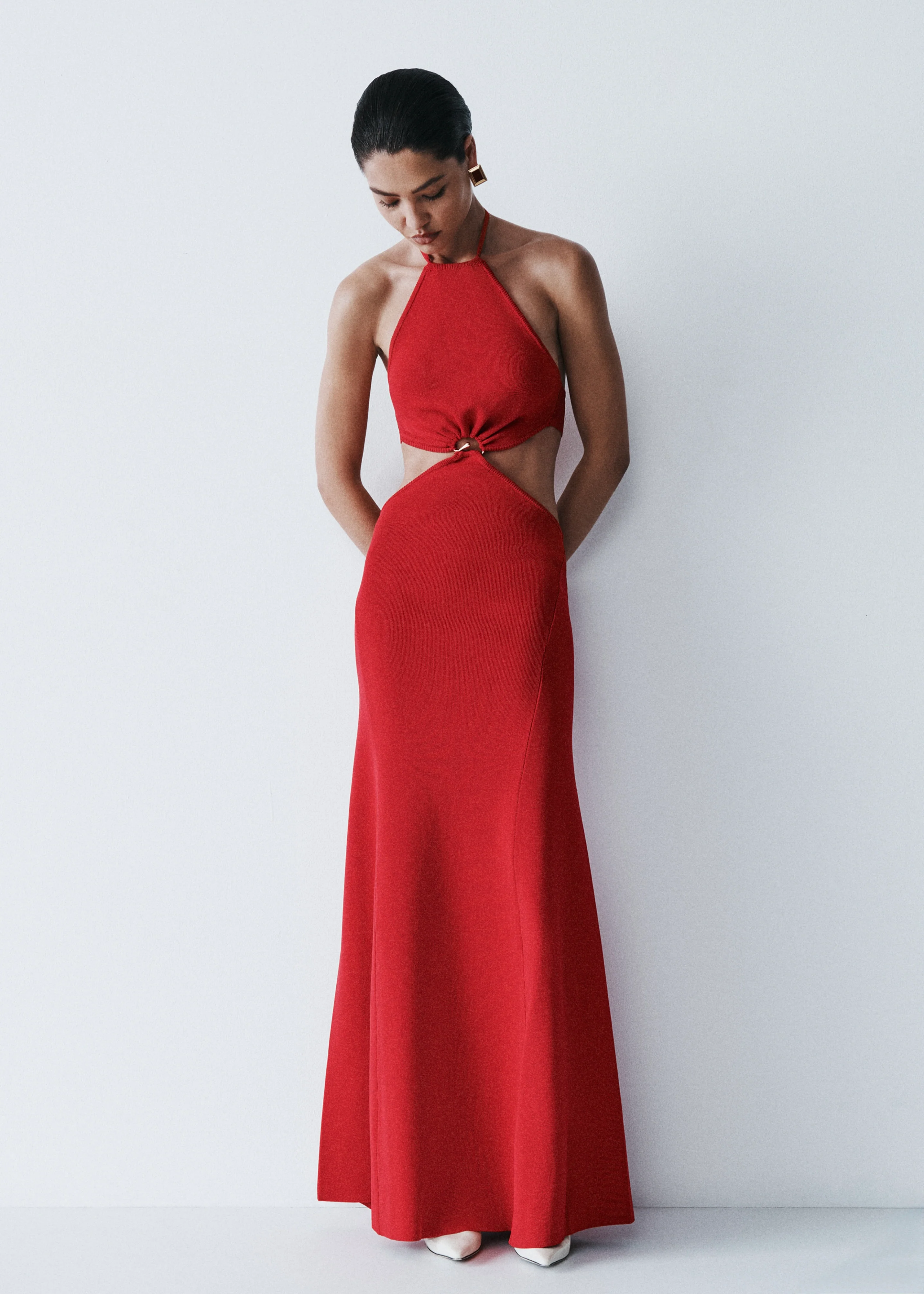 Marlowe Halter Knit Maxi Dress - Red