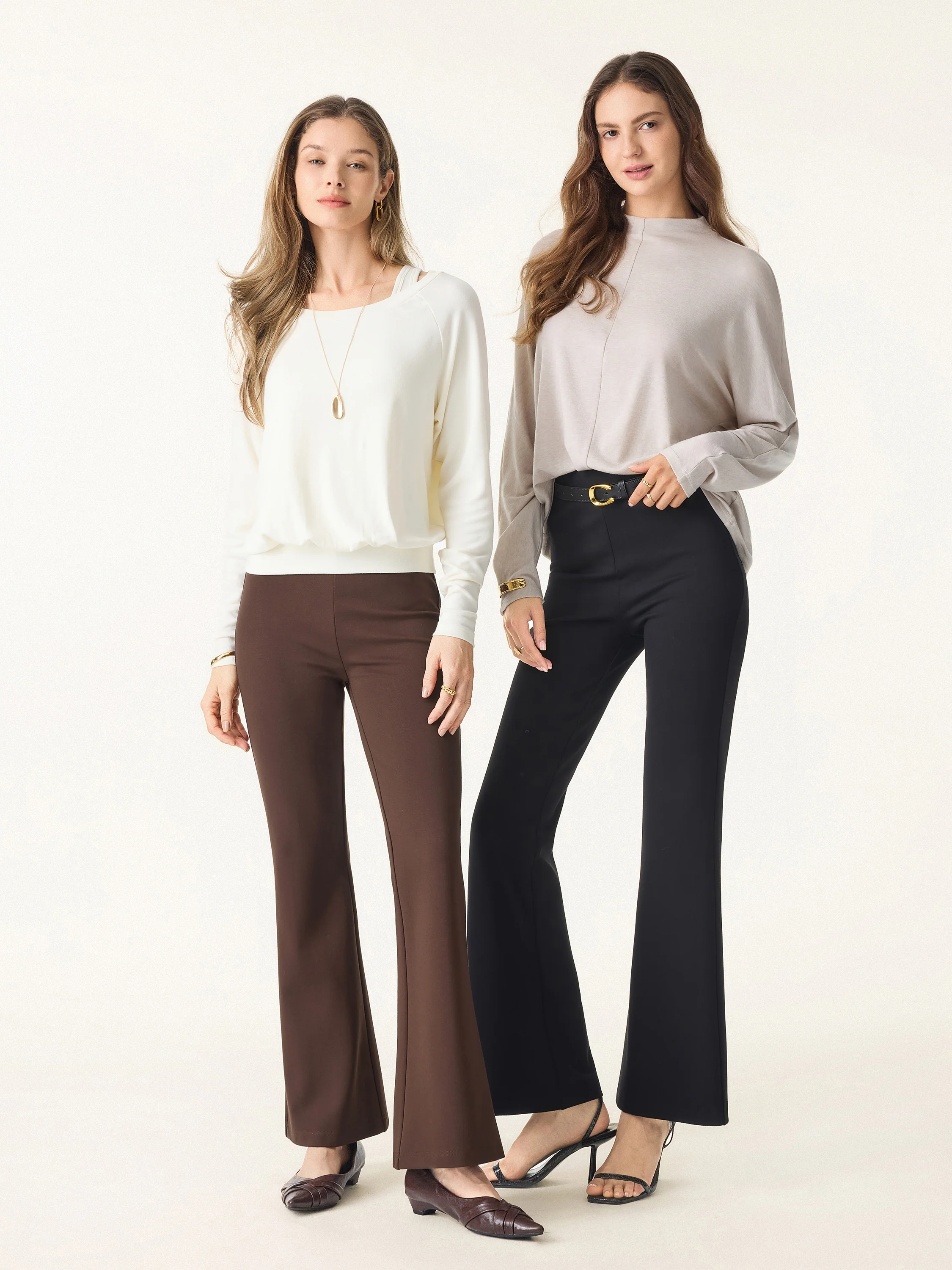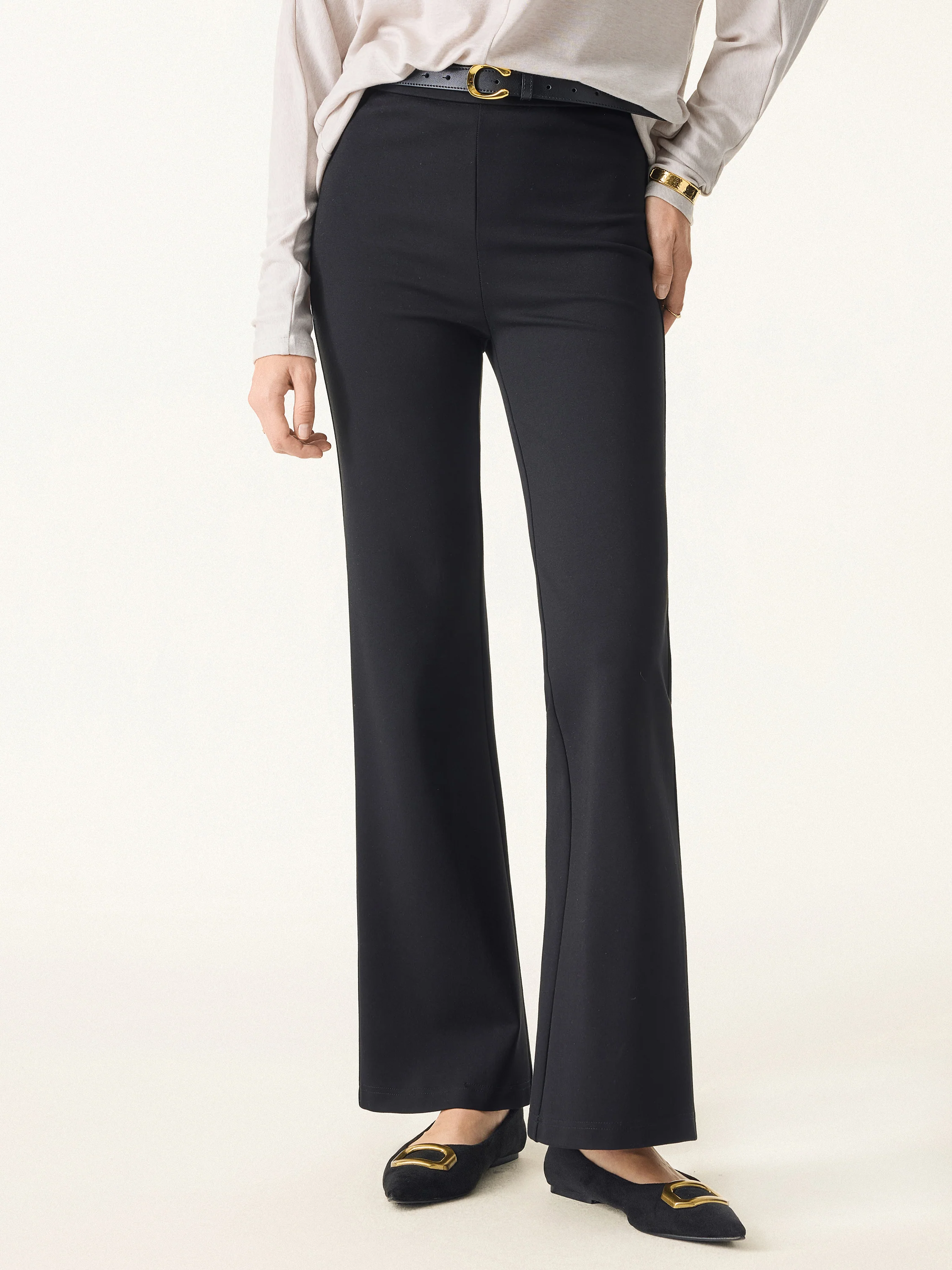 Slimming Ponte High-Waist Pull-On Flared Trousers