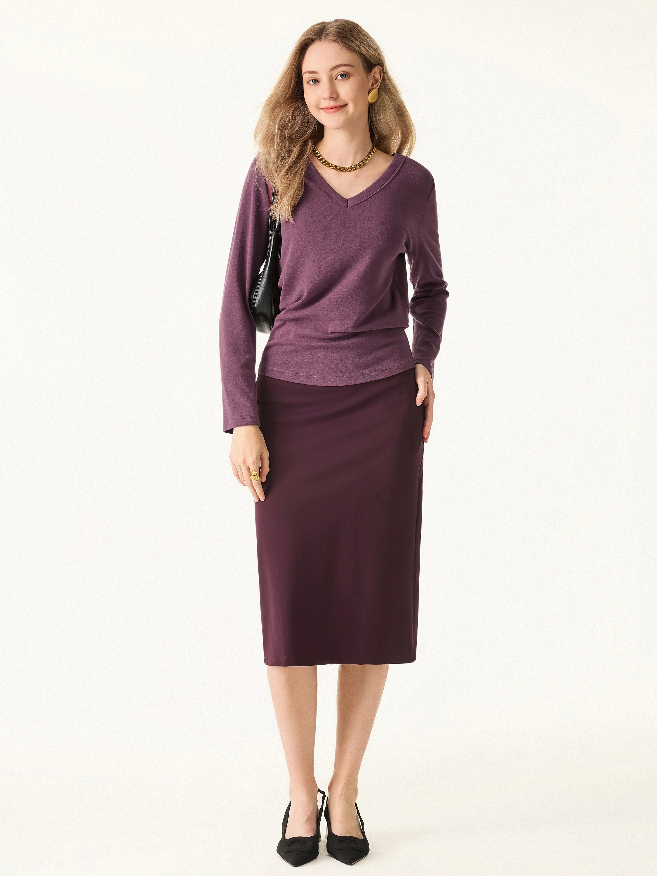 V neck Long Sleeve Top with Close fit Hem